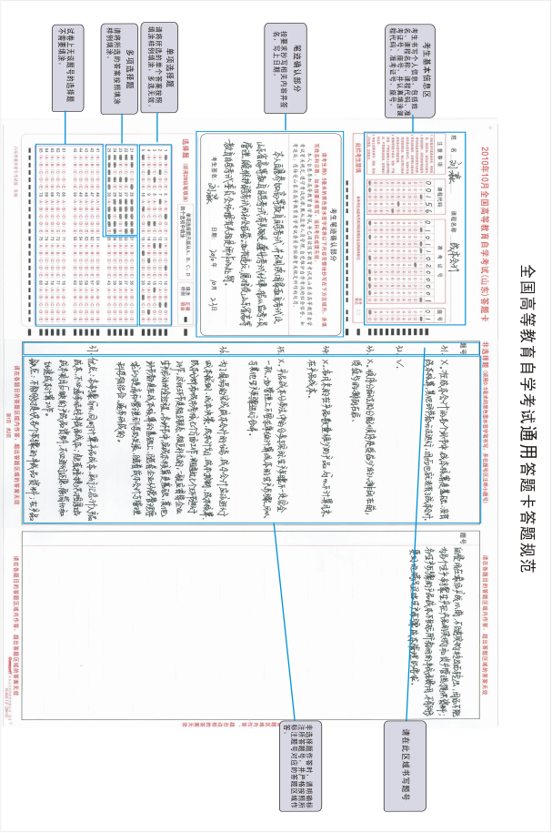 安徽省高等教育自學考試采用答題卡作答??忌⒁庠诖痤}卡指定的橫線上和書寫方框內填寫個人信息。每個書寫方框只能填寫一個阿拉伯數(shù)字。并保持答題卡卷面整潔,不得折疊、破損、污染,不能在非填涂區(qū)域亂寫亂畫。